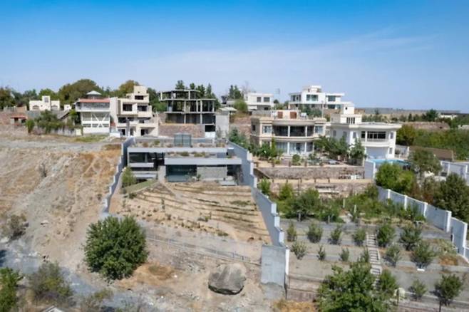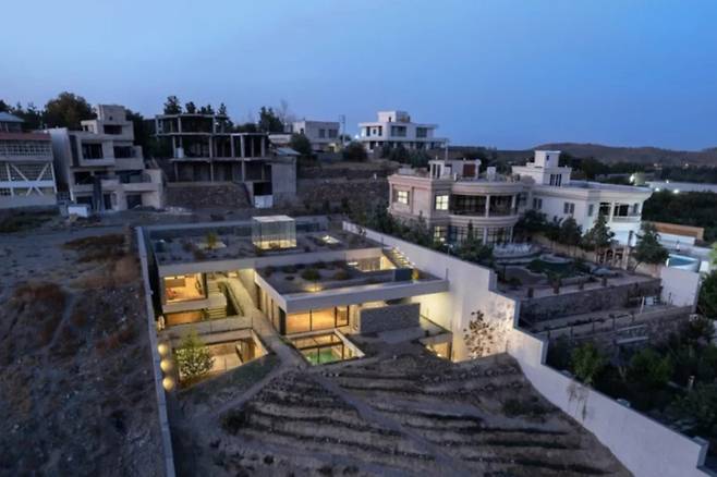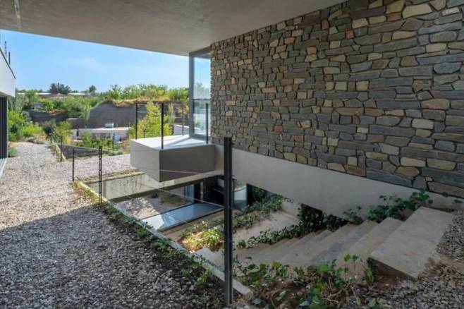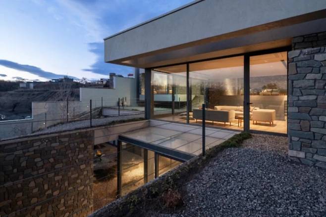이 집의 가장 큰 특징은 대부분의 공간을 땅속에 숨겨뒀다는 점이다. 지면을 층층이 쌓고 일부를 잘라낸 뒤 그 아래에 공간을 만들어 넣었다.