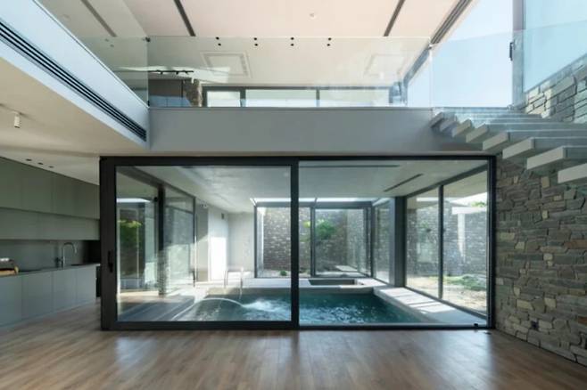 의식적인 개입과 자연스러운 흐름이 뒤섞인 결과다. 안과 밖의 경계가 뒤엉키며 만들어지는 중간 지대, 그 안에서 이 집은 미지의 공간을 탐험하듯 거주자를 이끌어간다. 살면서 조금씩 발견되고 시간과 함께 진화하는 집이다.