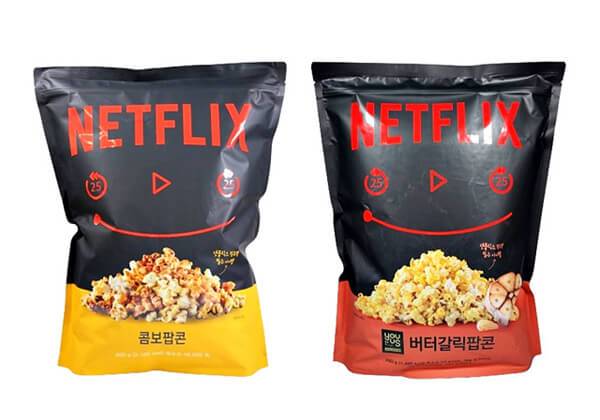 편의점 GS25는 넷플릭스와 손잡고, 가정에서 OTT를 보며 즐길 수 있는 대용량 팝콘 제품을 선보이고 있다. 최근에 출시된 신제품은 점보 팝콘 2탄인 ‘넷플릭스 버터갈릭팝콘’이다. 진한 버터맛과 우리나라 사람들이 선호하는 마늘의 맛을 활용한 특이한 조합의 팝콘이다. 대용량으로 제공되며 봉지는 지퍼백으로 만들어져 한 번에 다 먹어야 하는 부담을 줄일 수 있다. 편의점 기준 판매가는 6,900원이다.
