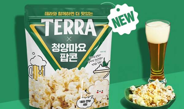 맥주와 어울리는 제품군과 콜라보를 연이어 진행하고 있는 테라의 브랜드로 ‘청양마요 팝콘’을 출시했다. 부드러운 마요네즈와 알싸한 청양고추의 조합으로, 팝콘 특유의 바삭함에 톡톡 쏘는 풍미까지 즐길 수 있는 제품이다. 해바라기유를 사용해서 고소함을 배가시킨 팝콘이다. 홈플러스 등 대형마트에서 만날 수 있는 제품으로, 270g의 대용량으로 판매되고 있다. 대형마트 기준 판매가는 3,980원이다.