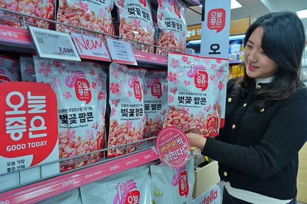롯데마트, 롯데슈퍼는 자체 브랜드인 ‘오늘좋은’으로 다양한 팝콘 제품을 공급하고 있다. 오늘좋은은 롯데마트, 롯데슈퍼의 PB 전문 MD와 롯데중앙연구소가 1년간 협업해 내놓은 신선, 가공식품 및 일상용품 PB다. 오늘좋은 브랜드로 판매되는 팝콘은 ‘오늘좋은 포대 팝콘(500g)’, ‘오늘좋은 벚꽃 팝콘(140g)’, ‘오늘좋은 오리지널&카라멜 팝콘’ 등이다. 대표 메뉴로 꼽을 수 있는 오늘좋은 벚꽃 팝콘의 판매가는 2,490원이다.