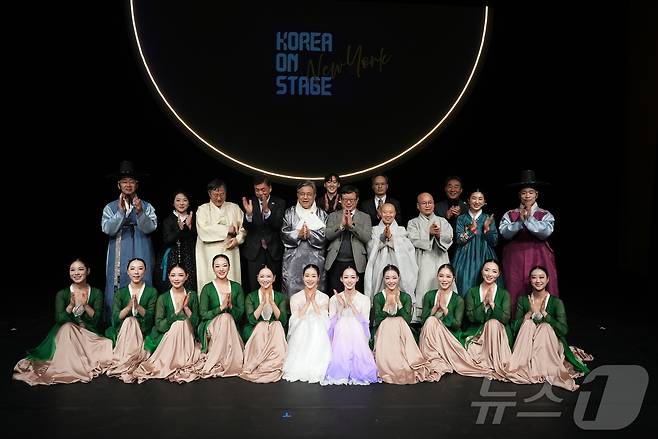 (서울=뉴스1) = 허민 국가유산청장이 11일 오후(현지시간) 미국 뉴욕 타임스퀘어 광장에서 펼쳐진 ‘코리아 온 스테이지 인 뉴욕’ 개막식에서 국가유산진흥원 예술단과 기념촬영을 하고 있다.