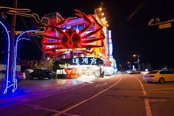 강구항 대게거리는 강구대교에서 동광어시장까지 약 1km에 걸쳐 펼쳐진 음식 테마 거리랍니다. 170여 개의 해산물 전문점이 해안선을 따라 늘어서 있어 마치 거대한 야외 푸드코트 같은 느낌을 주지요.