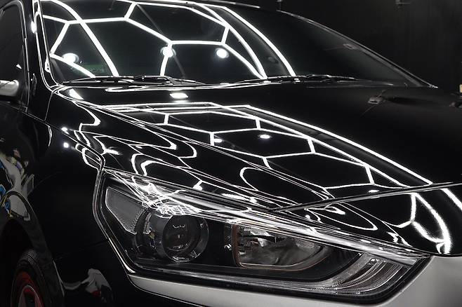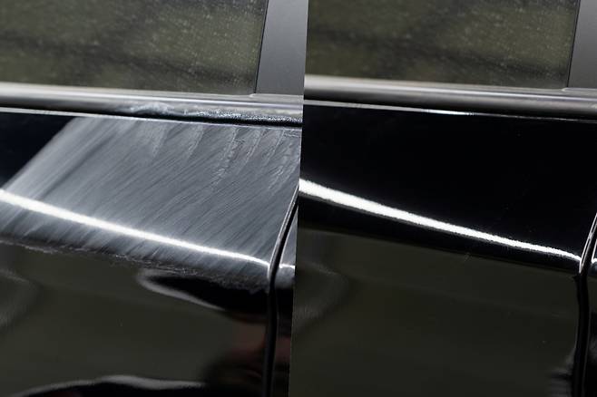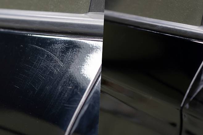 간단한 작업인데, 효과는 꽤 놀라웠다. 흠집을 완벽히 제거했을 뿐 아니라, 기존 컴파운드와 달리 도장면의 광도가 죽지 않는 모습도 눈에 띄었다.