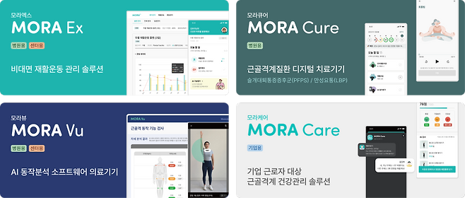 이 과정들을 통해 2023년 모라가 탄생했다. 병원과 스포츠 센터 등에서 쓸 수 있는 공개형 플랫폼이다. “모라를 활용한 치료 과정은 다음과 같습니다. 우선 인공지능(AI) 기반 자세추정, 동작분석 의료기기인 모라뷰(MORAVu)를 통해 환자의 상태를 검사합니다. AI가 환자의 움직임을 분석해 근골격계를 평가하죠.이후 모라엑스(MORAEx)를 통해 맞춤형 재활운동을 처방합니다. 환자는 처방 받은 커리큘럼을 따라 집에서 재활운동을 합니다. 의료진은 환자의 운동과정을 모니터링하고 피드백을 줍니다. 환자가 모라 세계관을 따르기만 하면 2~3달 이상의 운동 과정을 소화할 수 있습니다.”