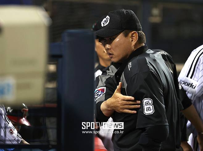3회말 2사 상황에서 박해민은 삼진을 당한 뒤 권영철 주심과 짧게 대화를 나누기도 했다.