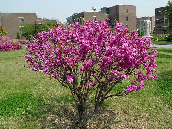 가지에 붉은 꽃이 다닥다닥 피는 모습이 이채롭다. 나무가 아니라 꽃으로 뒤덮인 듯하다. 꽃에 독성이 있다.
