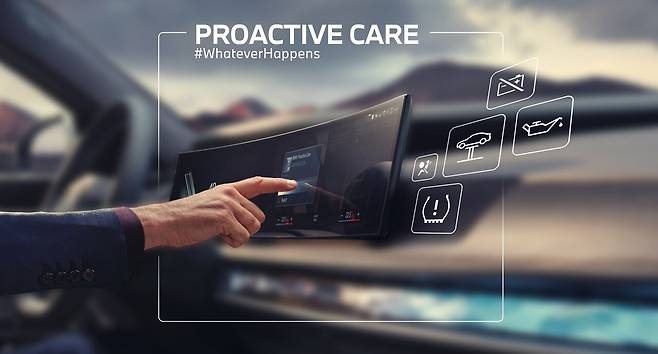 '프로액티브 케어(Proactive Care)' 서비스라는 이름으로 차량의 데이터를 원격 수집해 타이어, 배터리, 오일 등 일반 정비와 고장 및 사고에 이르기까지, 차량 운행 시 발생할 수 있는 다양한 상황을 선제적으로 진단하고 고객에게 안내하는 서비스다.