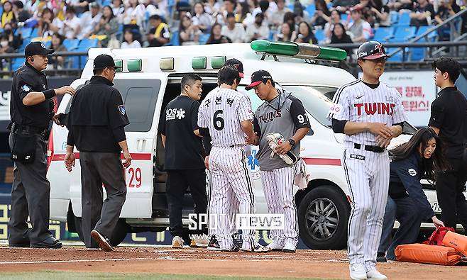 구급차의 등장에 LG 팬들의 가슴은 철렁했고, 잇따른 부상 악재에 대한 트라우마가 겹치며 관중석에서는 야유도 터져 나왔다.