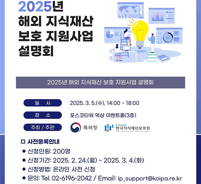 이와 관련해 특허청은 내달 5일 서울 포스코타워역삼에서 올해 해외 지식재산 보호 지원사업 설명회 개최한다.