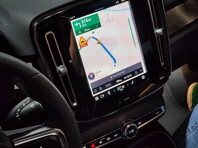 그런데 먼저 시승한 c40 리차지의 실내 첫인상은 '간결함'과 '불안함'이 공존했습니다. 사진에서 볼 수 있듯 각종 버튼들이 상당히 억제되어 있기 때문에 아주 절제되어 있는 모습이 좋았던 반면 세로형 디스플레이는 불편함이 크지 않을까 하는 걱정이 앞섰습니다. 국내 브랜드에서 경험이 있기 때문이죠. 다행히 막상 사용할 때는 크게 불편함이 없었으나 분명히 어색한 감은 좀 있었습니다. 그래도 가만히 생각을 해봅니다.