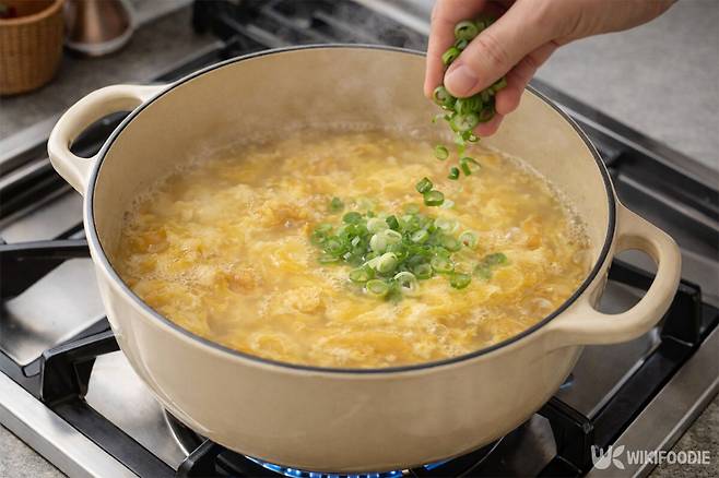 - 계란을 넣은 후에는 오래 끓이지 않아야 식감이 질겨지지 않는다.
