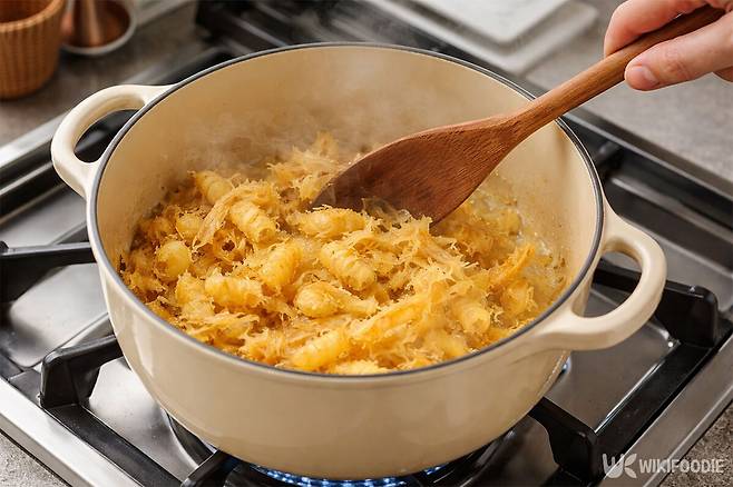 불을 끈 뒤 대파를 넣어 잔열로 익히면 대파 특유의 향긋함이 배어 나오며 요리가 마무리된다.