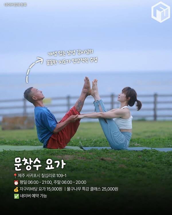 제주 문창수 요가는 개성 있는 남성 강사가 직접 지도하며 꼼꼼한 피드백으로 호평받고 있습니다. 특히 자구리바당을 배경으로 하는 오션뷰 요가는 저렴한 가격으로 특별한 경험을 할 수 있습니다.