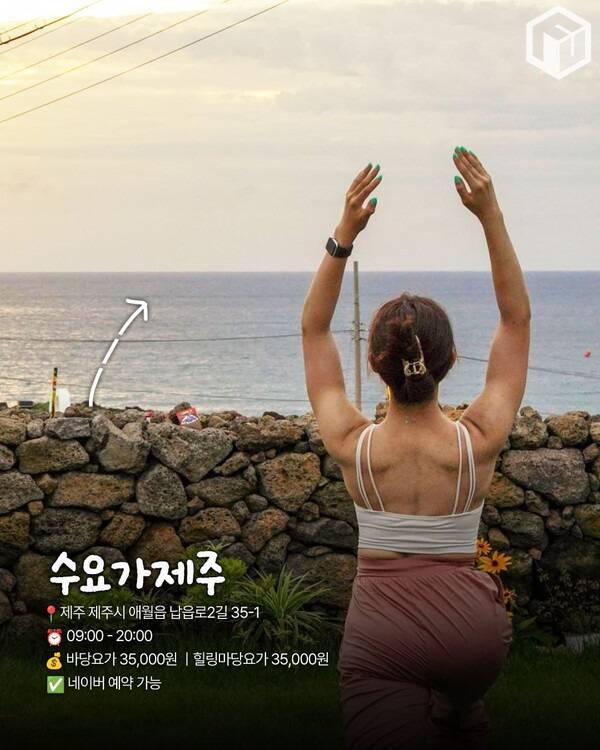 수요가 제주는 애월의 바당을 배경으로 호흡과 명상에 집중하는 요가 수업을 운영합니다. 특히 ‘힐링마당 요가’는 마음을 안정시키는 데 도움이 되어 여행의 피로를 풀기에 적합합니다.