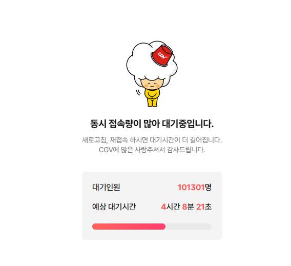 2025년 7월 25일, 영화계에 대박 소식이 터졌어요! 문화체육관광부와 영화진흥위원회가 6,000원 영화 할인권 450만 장을 뿌린다고 했는데, 첫날부터 전국이 난리 났습니다. 😅 CGV, 롯데시네마, 메가박스, 씨네Q 앱과 홈페이지는 접속 폭주로 먹통! 어떤 분은 대기 인원 12만 명, 기다리는 시간 7시간(!)을 겪었다고 X에서 난리였어요. 서버가 버티질 못한 거죠. 😓