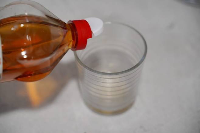 투명한 컵이나 작은 그릇에 식초를 1/3~1/2 정도 채워주세요.