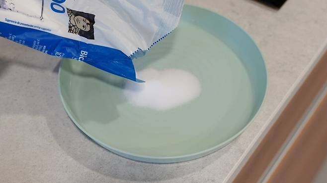 넓은 접시나 그릇에 베이킹소다를 넓게 펼쳐 주세요.