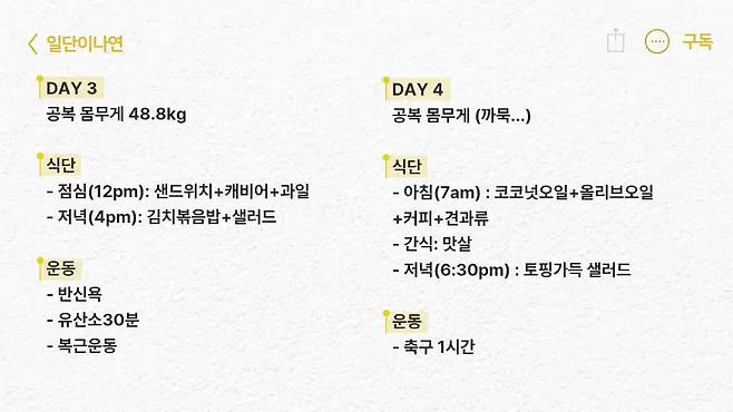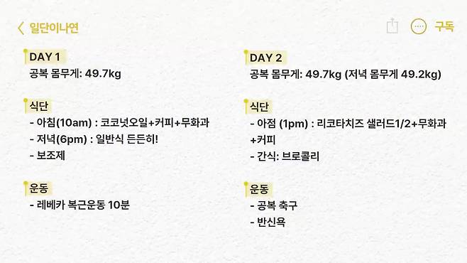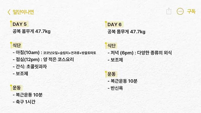 이나연은 식단과 함께 틈틈이 복근 운동을 병행하며 일주일 후 홀쭉해져 11자 복근이 드러난 영상을 공개해 감탄을 자아내게 한다.