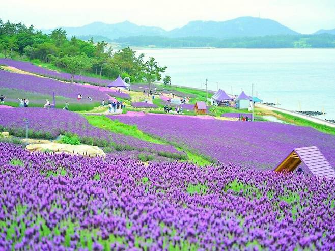 라벤더 정원은 총 3만 5341㎡의 부지 위에 6만 6000주, 약 2000만 송이에 달하는 프렌치 라벤더가 식재돼 있다. 이 풍경은 바다와 넓은 갯벌에 둘러싸인 이국적인 분위기로, 마치 지중해 프랑스의 라벤더 정원을 연상케 한다.
