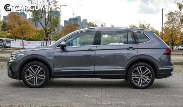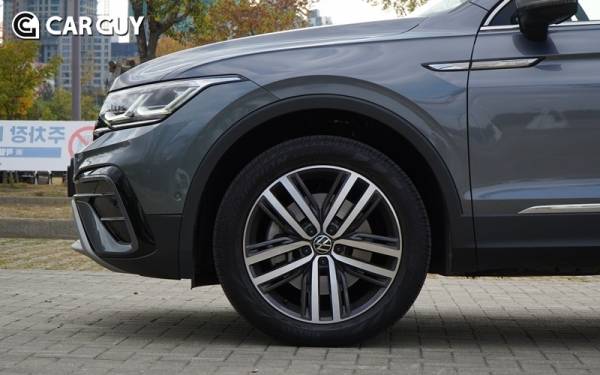 측면으로 돌면 티구안 대비 길어진 전장과 휠베이스가 눈에 띈다. 티구안 대비 전장과 휠베이스가 각각 220mm, 110mm씩 길다. 전장 4730mm, 전폭 1840mm, 전고 1660mm, 휠베이스 2790mm다. 현대자동차 중형 SUV 싼타페(전장 4785mm, 전폭1900mm, 전고 1685mm, 휠베이스 2765mm)와 비교하면 전장은 짧지만 휠베이스는 오히려 길다. 휠베이스가 늘어난 만큼 2열 도어를 길게 잡아 뺐다. 19인치 휠은 부분변경 이전과 동일하다. 후면은 올스페이스 레터링을 제외하고 기존 티구안과 차이를 찾기 어렵다.