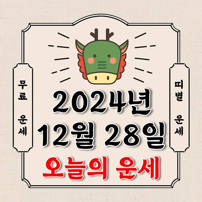오늘의 운세 2024년 12월 28일 토요일 (음력 11월 28일 / 띠별 운세 / 생년월일 운세)에 대해 알아 보겠습니다.