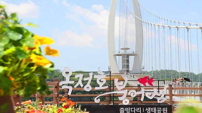 옥정호 출렁다리는 요산공원과 붕어섬을 연결하는 보행교다. 길이 420m, 폭 1.5m 규모로 조성된 이 다리는 호수 위를 걸어 건너는 독특한 경험을 제공하는 시설이다.다리 건설에는 총사업비 101억 원이 투입됐다.