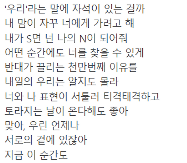 ‘내가 S면 넌 나의 N이 되어줘’라는 가사를