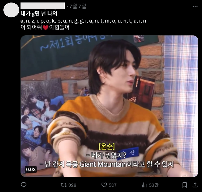 이번 제목 덕분에 귀엽게 주접떨 수 있는