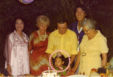 하하의 돌잔치, 친구들과의 파티, 유치원 졸업식 사진이다.