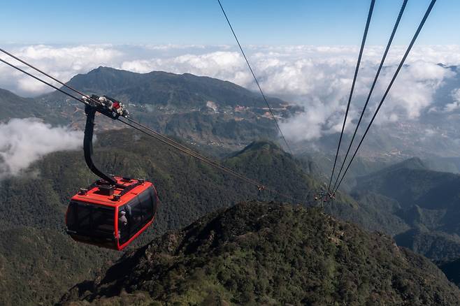 청명한 날씨에는 전망대에서 베트남 북부의 화려한 산악 지형과 불교 사원까지의 경치를 조망할 수 있다.