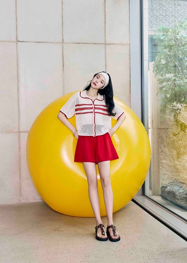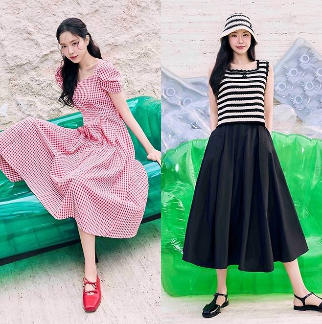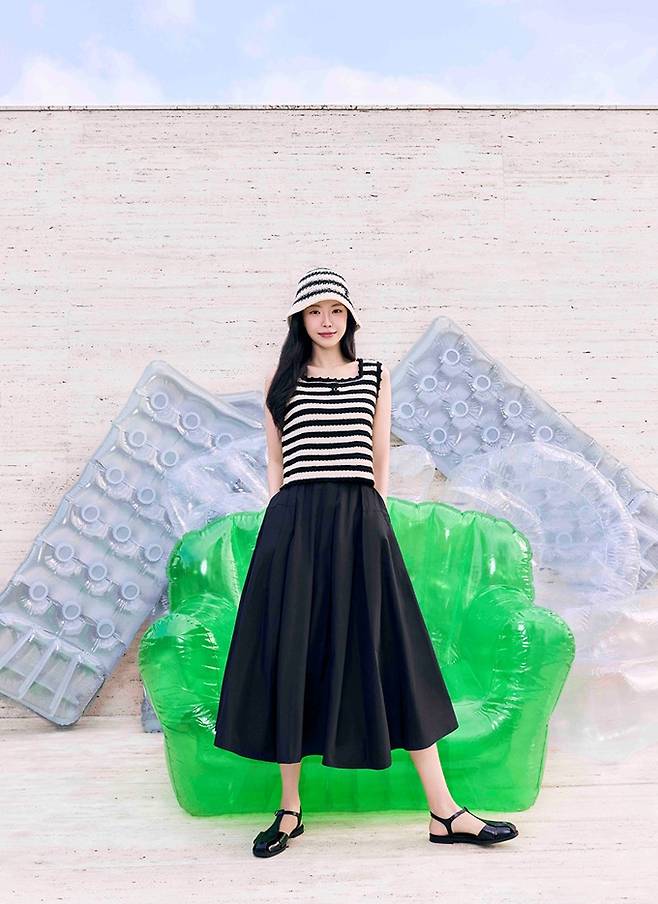이 외에도 레드 포인트 니트 가디건과 밴딩 쇼츠를 활용해 스포티한 일상룩을, 블랙 앤 화이트의 스트라이프 탑과 블랙스커트, 버킷햇을 매치해 페미닌한 섬머룩을 완성하는가 하면, 브라운 컬러의 슬리브리스 탑과 슬랙스를 셋업으로 매치해 트렌디하고 시크한룩을 제안했다.