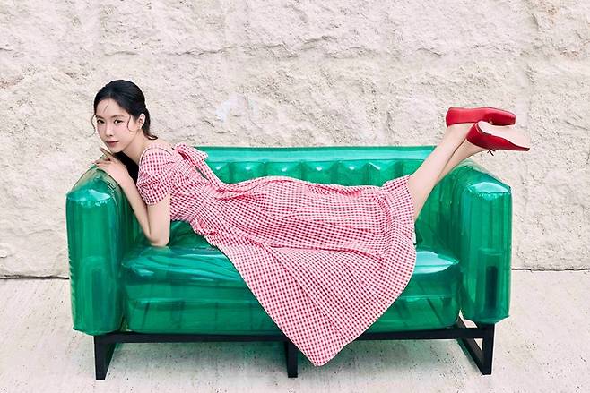 손나은은 여름 휴가 시즌, 리조트룩에 제격인 체크 블라우스와 스커트로 스타일리시한 룩을 완성하거나 페이즐리 배색 티셔츠와 화이트 컬러의 팬츠를 매치해 청량한 무드의 섬머룩을 완성했다.