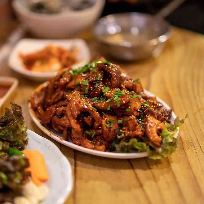 창신동의 명물로 자리 잡은 족발집 창신동 '창신동매운족발'. 안 그래도 매운맛을 좋아하는 사람들에게는 필수 코스로 여겨지던 식당이었지만 얼마 전 '나 혼자 산다'의 김대호 아나운서가 방문하면서 더욱 핫플이 되었다. 맛있게 삶아 낸 족발에서 살코기만 잘라내 매운 비법소스를 발라가며 석쇠에 굽는 '매운석쇠순살족발'이 이 집의 시그니처 메뉴. '맛있게 맵다'라는 말이 딱 어울리는 매운 족발은 한번 시작하면 멈출 수 없다.