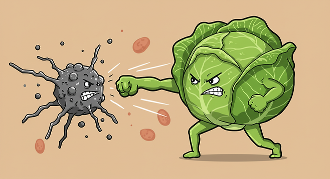 케일, 브로콜리, 양배추, 배추 등 십자화과 채소는 높은 항암효과를 가집니다. 브로콜리에 함유된 '설포라판'이라는 식물화합물은 간에서 발암물질 제거 역할을 담당하는 '제2상 효소'를 활성화시켜 체내에 들어온 발암물질을 분해·제거합니다. 브로콜리는 비타민C와 베타카로틴을 비롯해 철분, 칼륨 등 무기질과 식이섬유가 풍부해 감기 예방에도 효과적입니다.