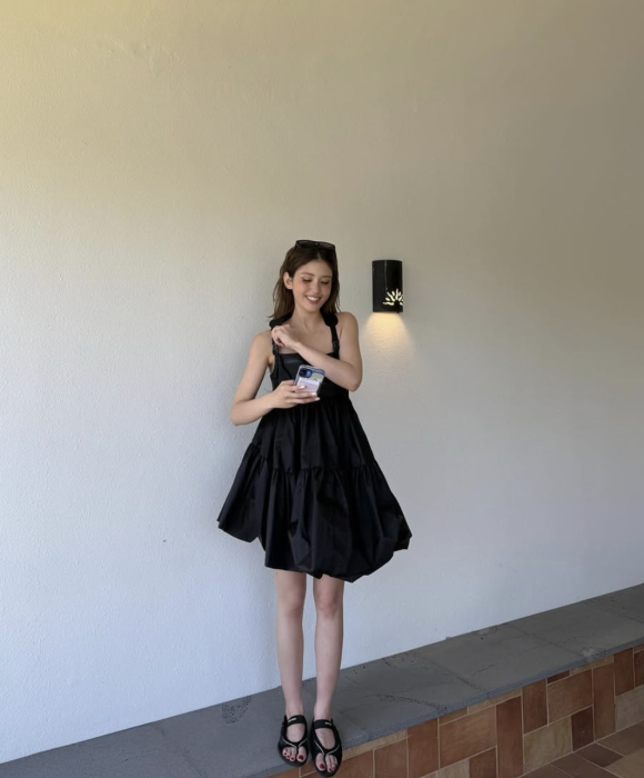 전소미가 선택한 이 원피스는 Cecilie Bahnsen과 노스페이스의 협업 컬렉션 중 하나로,양 브랜드의 정체성이 조화롭게 결합된 대표적인 사례다.