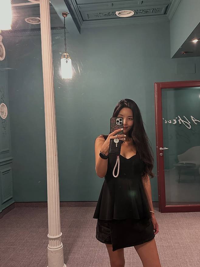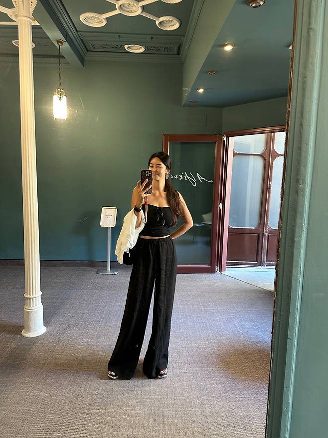 블랙 탑에 팬츠 하나로 완성. 박솔미가 보여준 패션