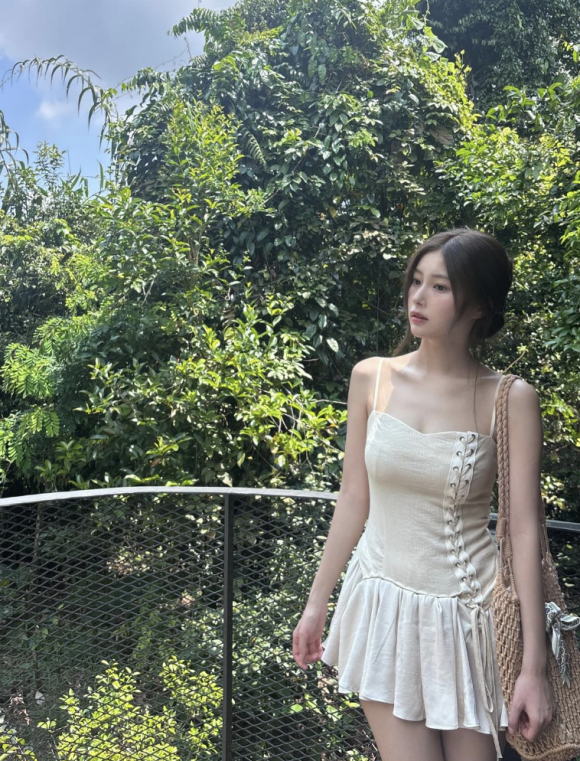 그녀가 선보인 원피스는 단순한 나시 드레스가 아닌, 유니크한 감성과 실용성을 갖춘 여름 휴양지룩의 정석이라 할 수 있다.