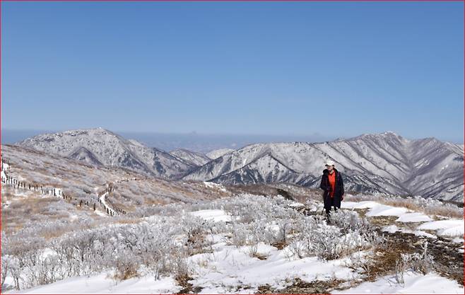 눈꽃과 억새가 공존하는 겨울 능선