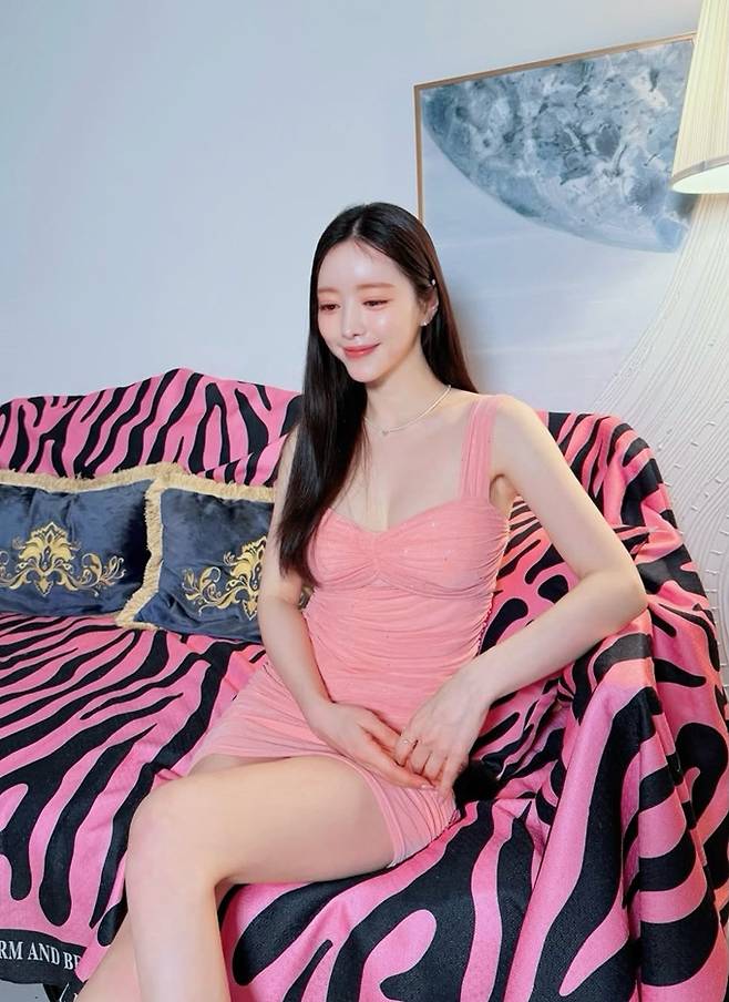 공개한 사진에서 홍수아는 몸에 핏되고 자연스러운 셔링 디테일이 돋보이는 톤다운 코랄 핑크 컬러의 미니 드레스룩으로 군살 하나없는 여성스러움과 섹시미를 드러냈다.