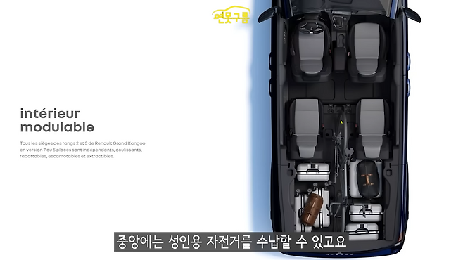 국내 미니밴 시장을 휩쓸고 있는 현대차 팰리세이드보다 작은 차체 크기지만, 놀랄만한 적재 공간을 자랑한다. 팰리세이드가 2열과 3열을 모두 폴딩했을 때 2,447리터의 적재 공간을 제공하는 것과 달리, 캉구는 3,750리터에 달하는 압도적인 화물 공간을 갖췄다.