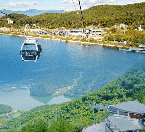 삼악산 호수 케이블카는 의암호를 건너 삼악산까지 이어지는 케이블카로, 탑승하면 맑은 의암호의 전경을 한눈에 조망할 수 있습니다. 의암호 정류장에서 출발해 대략 15분이면 삼악산에 도착하게 됩니다.