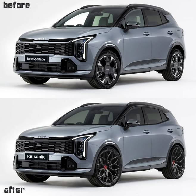 실제로 새로운 스포티지는 이미 전면 그릴, 범퍼 트림, 루프, 필러, 사이드미러 등에 유광 블랙 요소를 적용한 투톤 디자인을 채택하고 있다.
