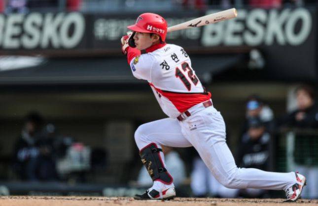 정현창은 두산 선발 최승용의 3구째 145km/h 직구가 한가운데로 몰리자 주저 없이 배트를 돌렸고, 타구는 우중간 담장을 훌쩍 넘는 비거리 125m짜리 대형 홈런으로 연결됐습니다. 1군 무대(시범경기 포함) 첫 홈런이자, 덩치에 어울리지 않는 가공할 파워를 입증한 순간이었습니다. 이후 8회에도 우익선상 안타를 추가하며 멀티히트를 완성한 그는 공·수·주에서 완벽한 '눈도장'을 찍었습니다.
