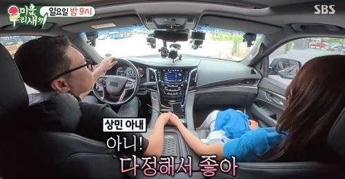 이상민은 병원 가기 전 꽃다발을 건넸고,부인은 “예쁘다”며 기뻐했다.
