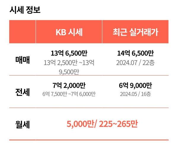 전세가격은 6억7500만원에서 7억2000만원대로 형성됐다. 지난 5월 34평 기준으로 6억9000만원에 전세 계약이 체결됐다.