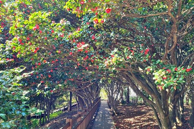 특히 1월부터 피기 시작한 동백꽃은 3월경 절정을 이루며, 방문객들에게 환상적인 경관을 선사한다.