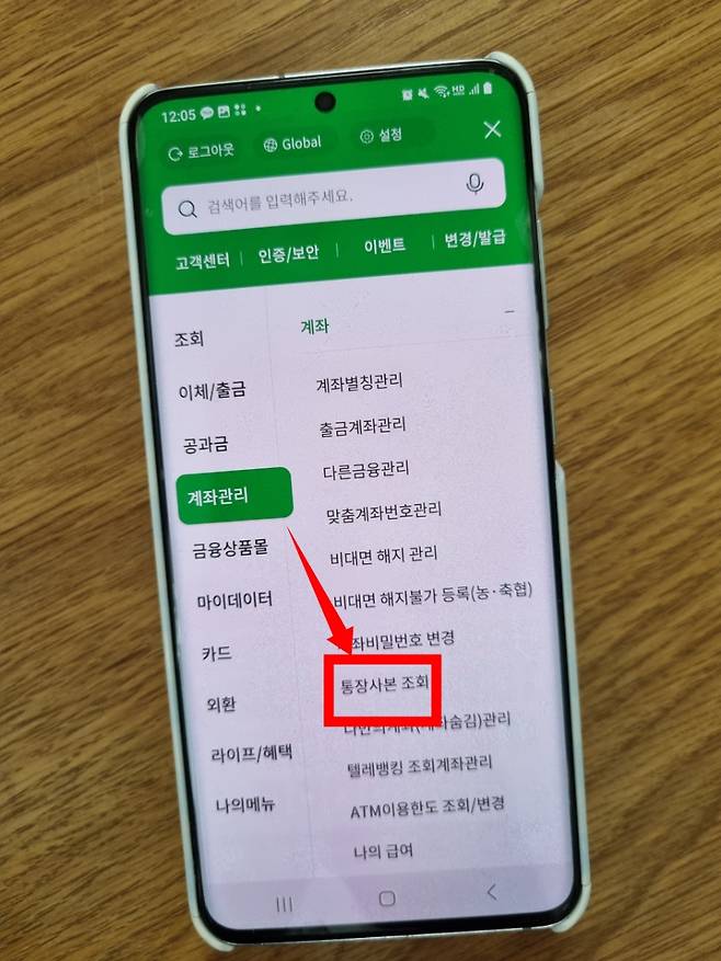 이 중에서 통장사본이 필요한 계좌를 선택합니다.