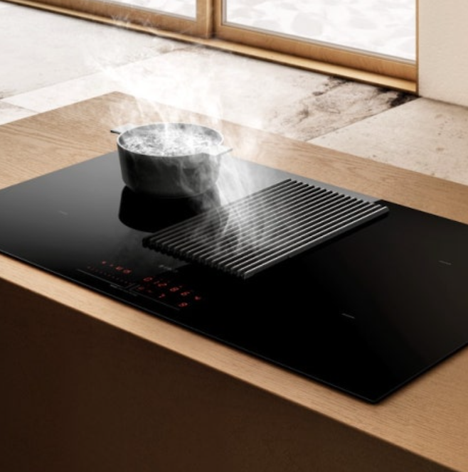 후드는 요리 중에 발생하는 유해 공기와 가스로부터 호흡기를 보호한다. 후드를 꼭 천장에 부착해야 하는 것은 아니다. 예를 들어 오픈형 아일랜드 주방에서 천장에 부착한 후드는 시야를 가려 답답하고 호흡기를 거쳐 올라온 연기를 흡입한다. 만약 호흡기를 보호해야 한다면 인덕션 일체형 후드를 추천한다.
