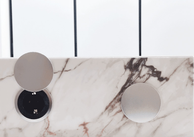 시각적으로 깔끔하고 미니멀한 콘센트를 찾는다면 바흐만 1구 pix 콘센트를 추천한다. 상판에 빌트인해도 되지만 요리를 할 때 간섭되는 불편한 경우가 생기는데 바흐만 pix 콘센트는 가구 측면에도 매립할 수 있다는 장점이 있다.